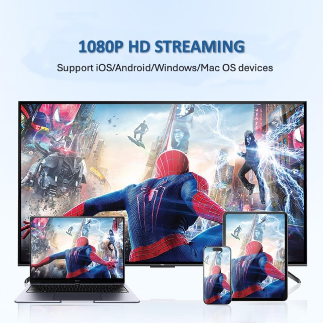 - 5️⃣ 【Universal Compatibility & Easy Setup】 Compatible with iOS 9+, Android 5.0+, Windows 8.1+, and macOS. This wireless HDMI adapter works with smartphones, tablets, and laptops. (Note: Does not support Netflix, Amazon Prime Video, or other HDCP-protected apps.)