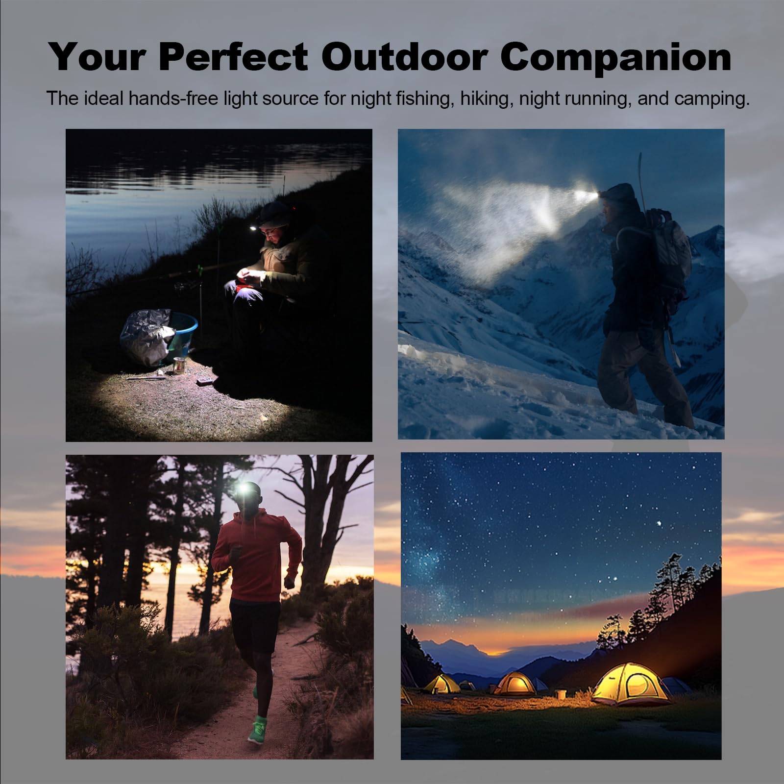 - 5. 【Your All-in-One Hands-Free Light for Every Adventure】 This head lamps for adults and kids head torch is incredibly versatile. It's the perfect head torch for running, hiking, camping, and night fishing. Durable, powerful, and easy to use, this lumilight head torch is the only hands-free lighting solution you'll ever need for your outdoor pursuits.